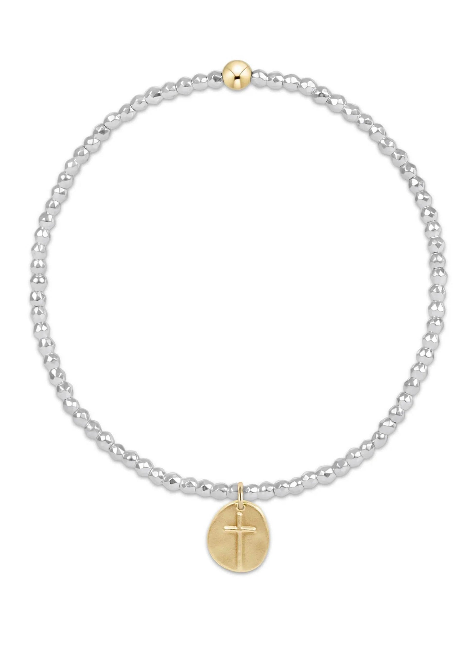 ENewton/ Bright Silver Faceted Hematite 2mm Bead Bracelet-Inspire Small Gold Charm