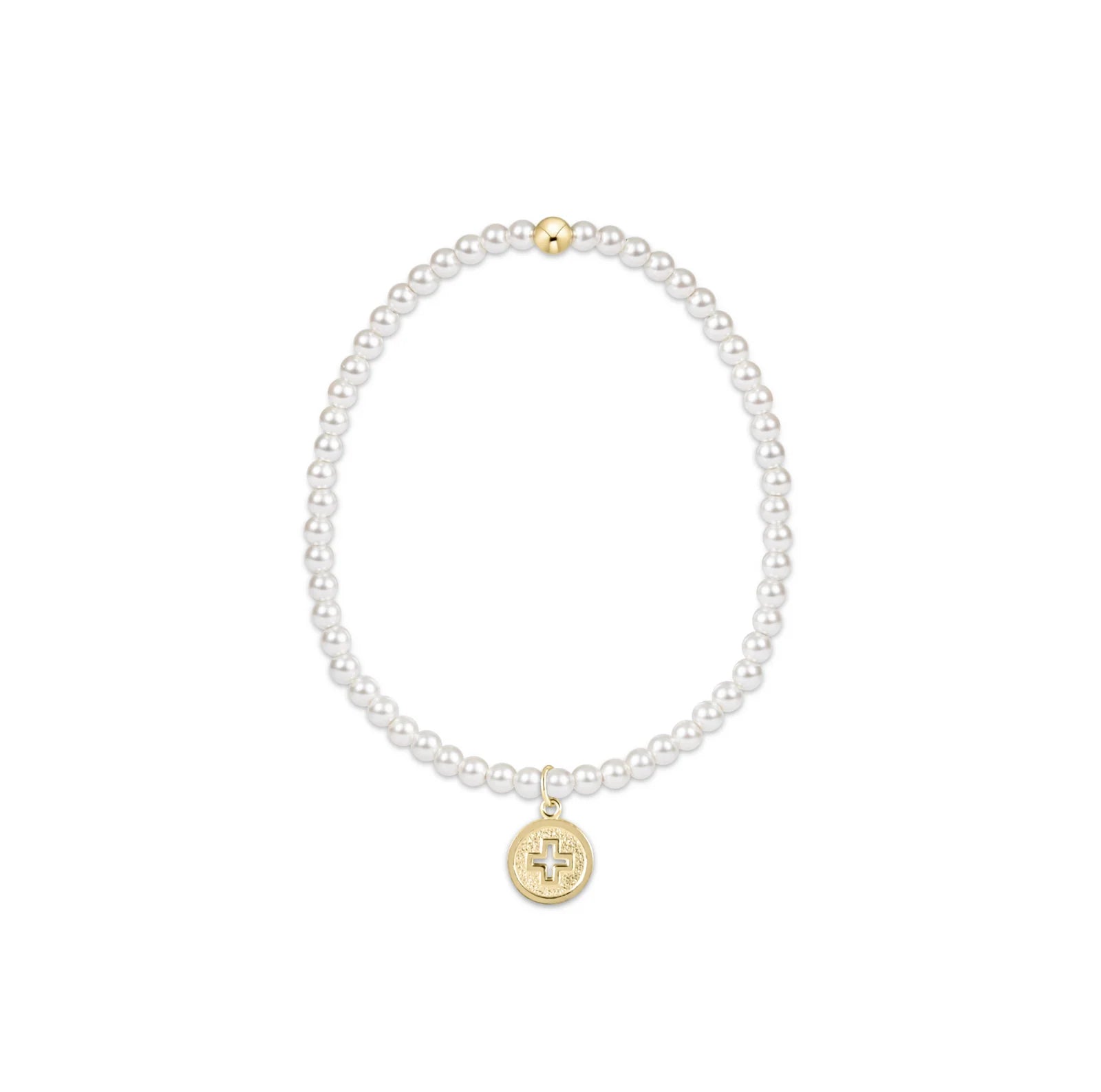 Classic Pearl 3mm Bead Bracelet - Signature Cross Gold Disc by Enewton!