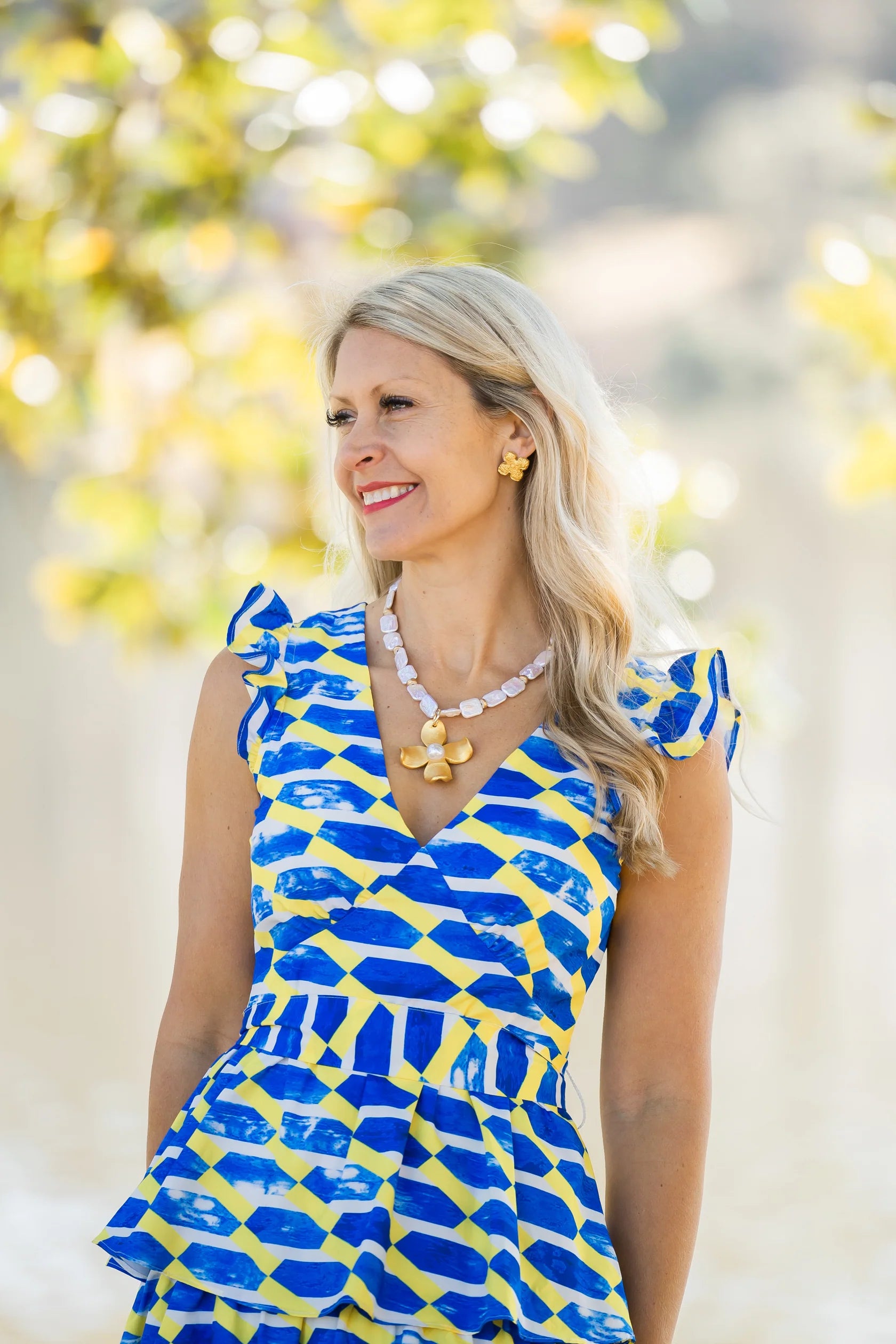 18" Rectangle Fresh Water Pearl with Dogwood Pearl Necklace