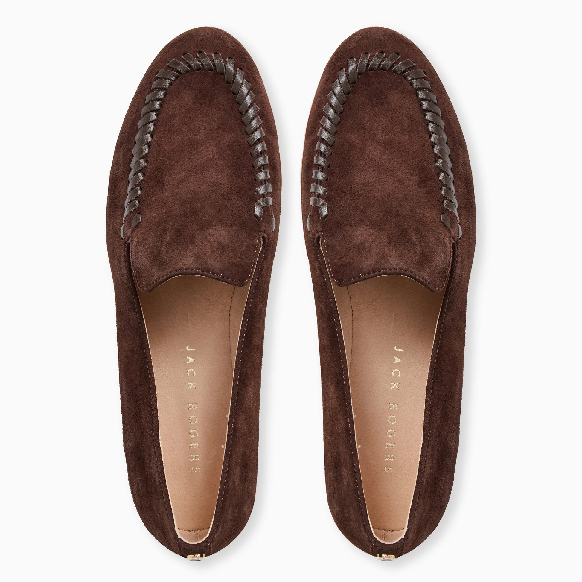 Add a refined twist to your fall wardrobe with the Jack Rogers Camden Suede Loafer in rich hot fudge brown. Made from soft kid suede with a full leather upper and smooth lining for all-day comfort, these classic brown loafers bring timeless polish to any look. Whether you're heading to the office, running errands, or dressing up a neutral-toned outfit, their versatile round-toe silhouette makes them a go-to for effortless autumn style.