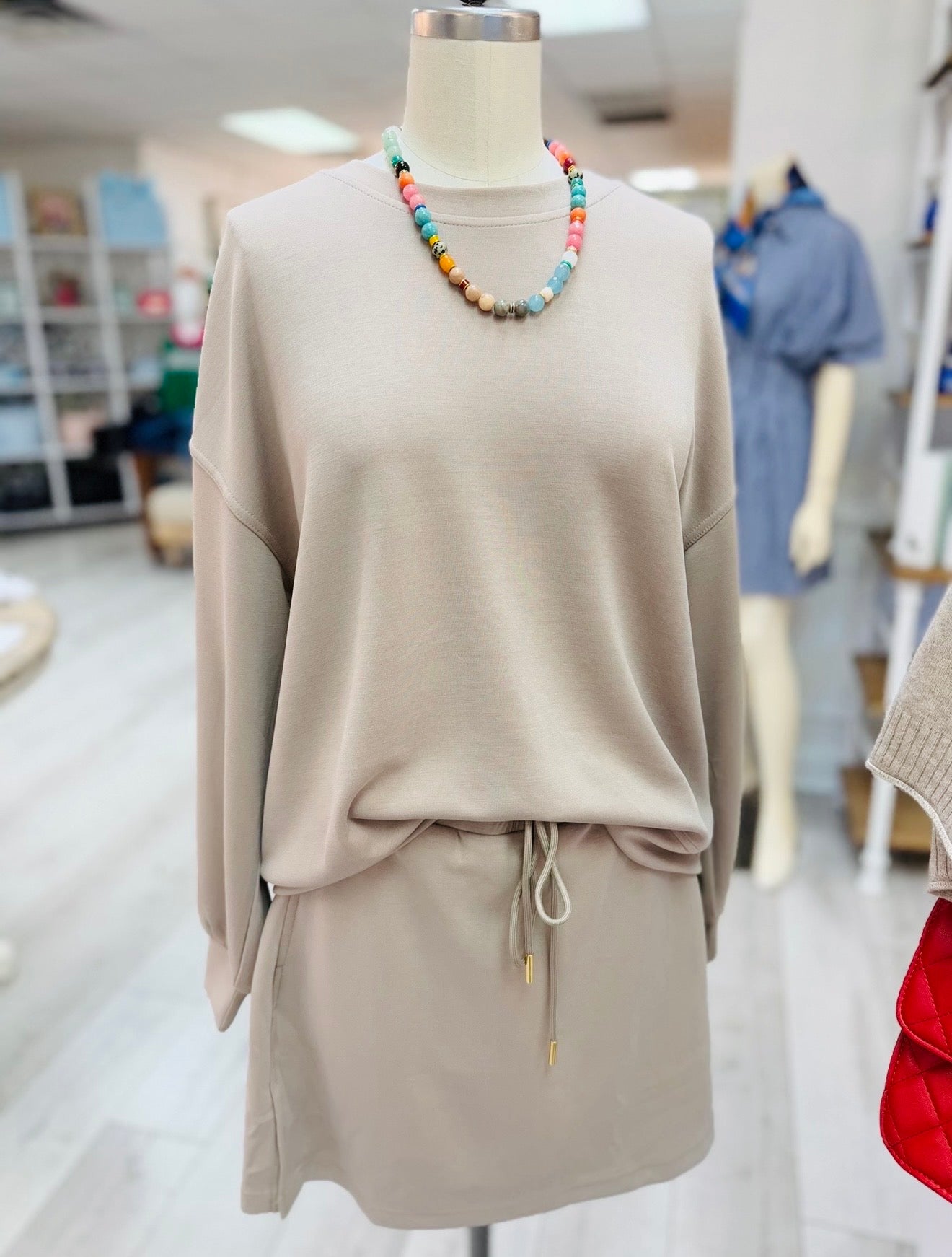 Elastic waist soft and stretchy skort. Pairs back perfect to make a comfy set with The Cora Top.