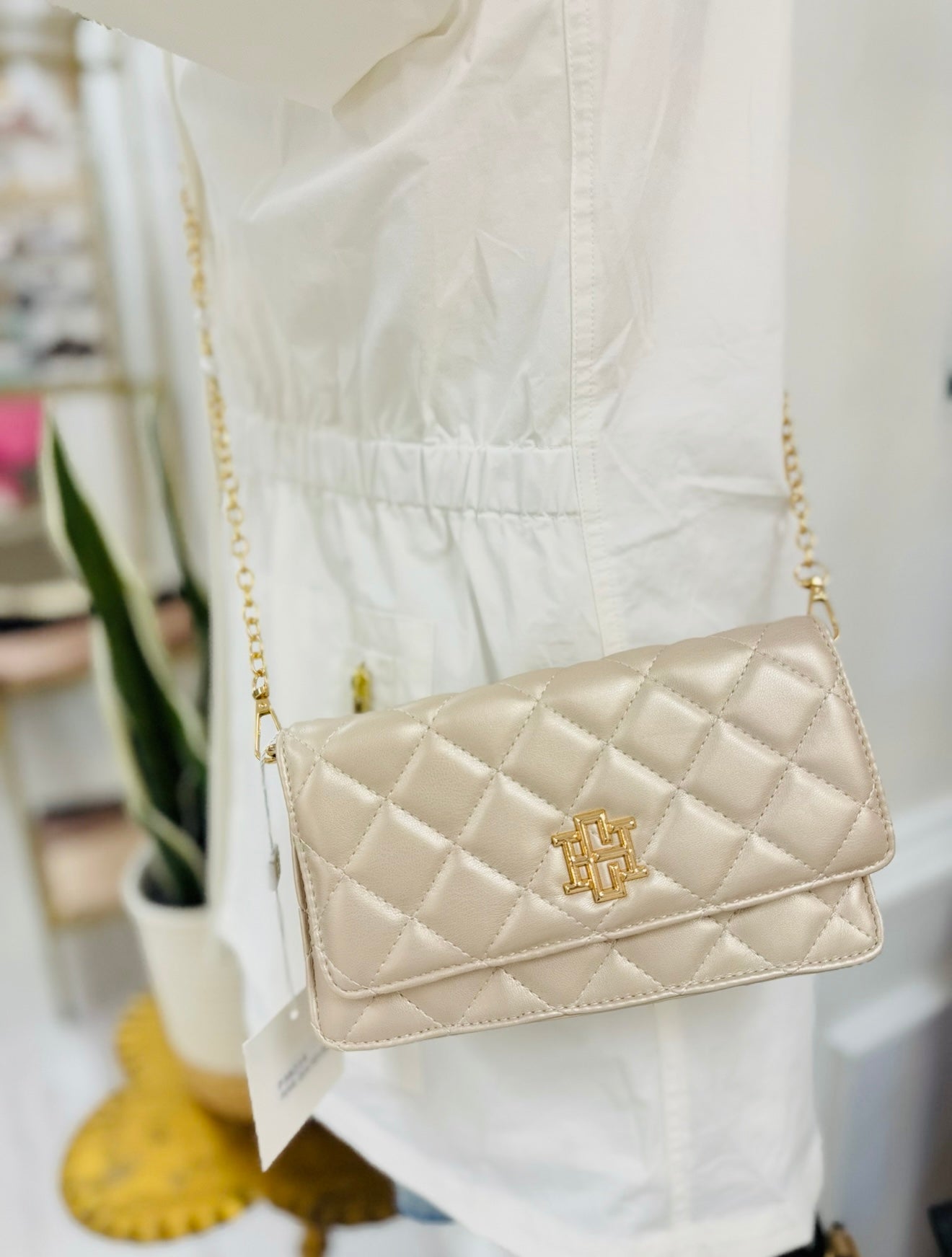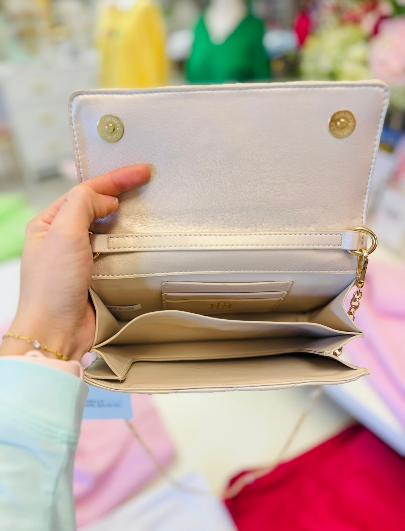 This stylish straw handbag is a grate statement piece. It has a gold link crossbody strap featuring subtle accent pearls for a classy touch. The strap is removable so the bag can be carried as a fashionable clutch as well. It has a front magnetic flap that features the Caroline Hill logo, and the vegan leather interior has two separate sections with card slots to keep you organized when using.