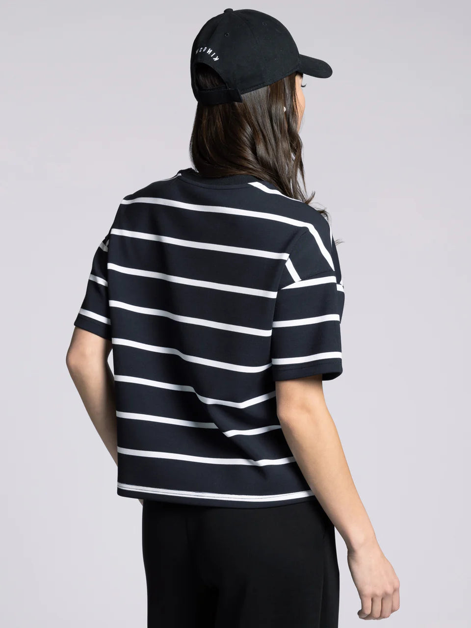 Layer up or wear solo in this essential short-sleeve tee, featured in a boxy silhouette and slightly cropped fit with a classic crew neckline and drop shoulder silhouette.