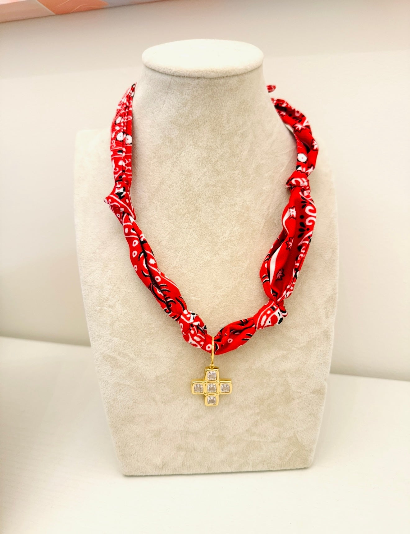 The Create Your Own Necklace-Red Bandana-Block Cross