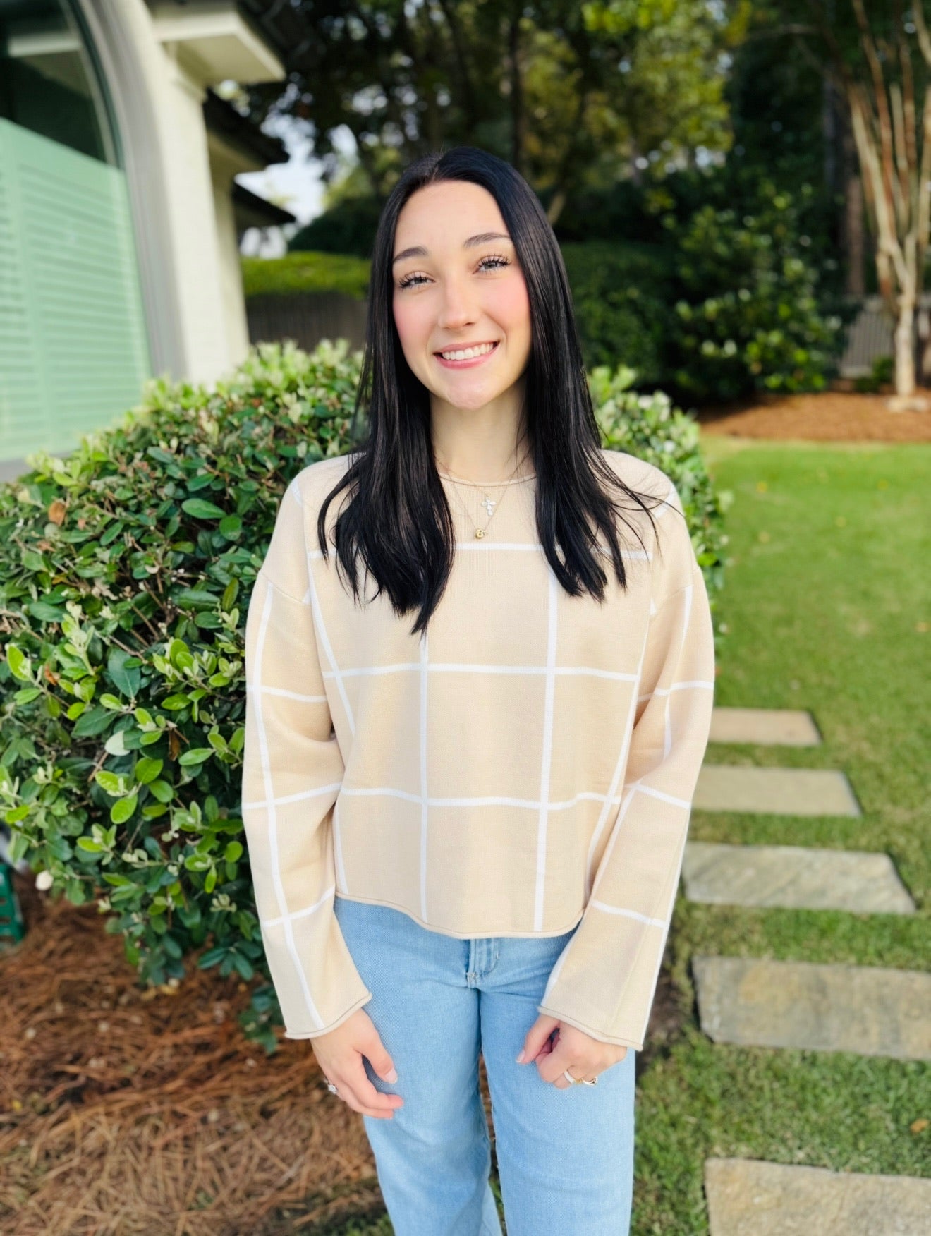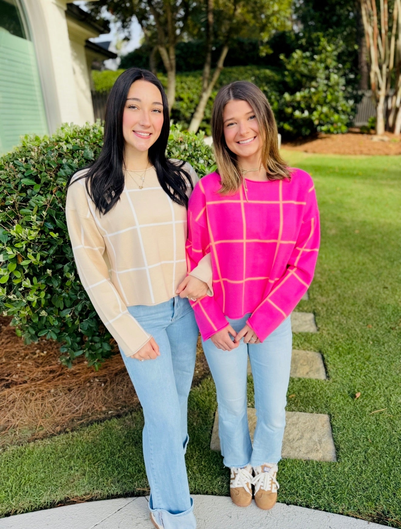 GRID DROP SHOULDER SWEATER 50% VISCOSE, 28% POLYESTER, 22% NYLON
