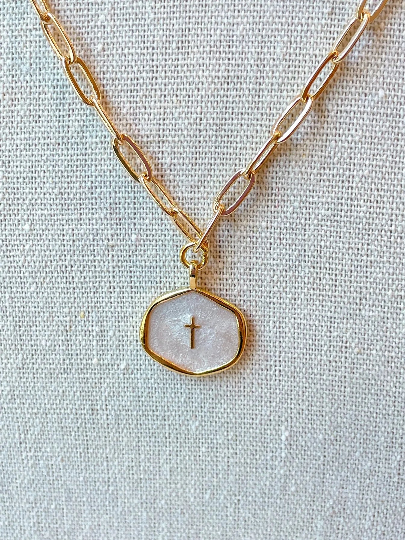 16-18 inches. Matches perfect with The Pearl Cross Charm Bracelet