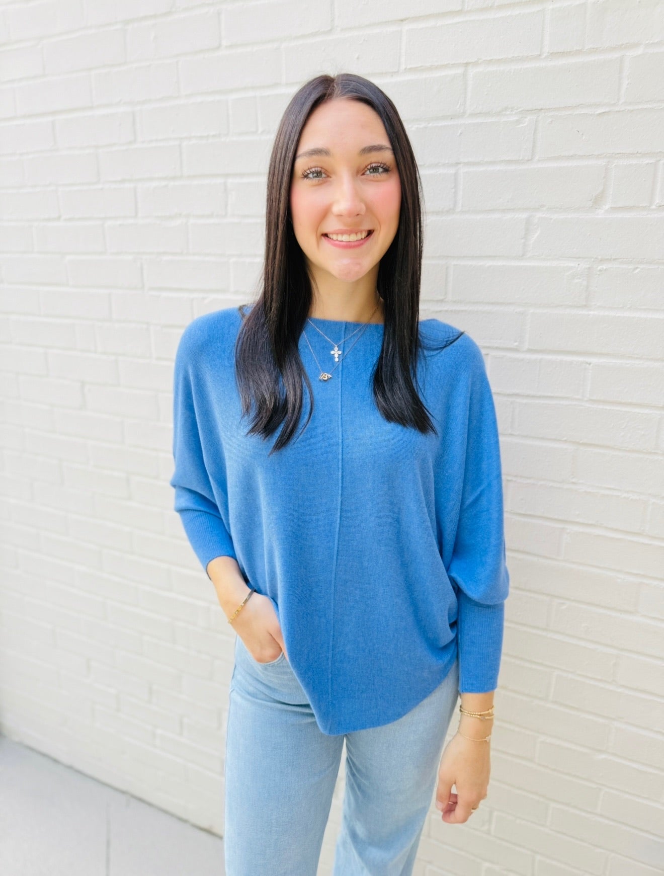 Our bestselling Ryu top is as soft as it is practical. While wearing the brand-new cashmere version, you will feel like you are wearing a piece of heaven. The added touch of the center seam and bat wing sleeve give this top a bit of extra dimension.