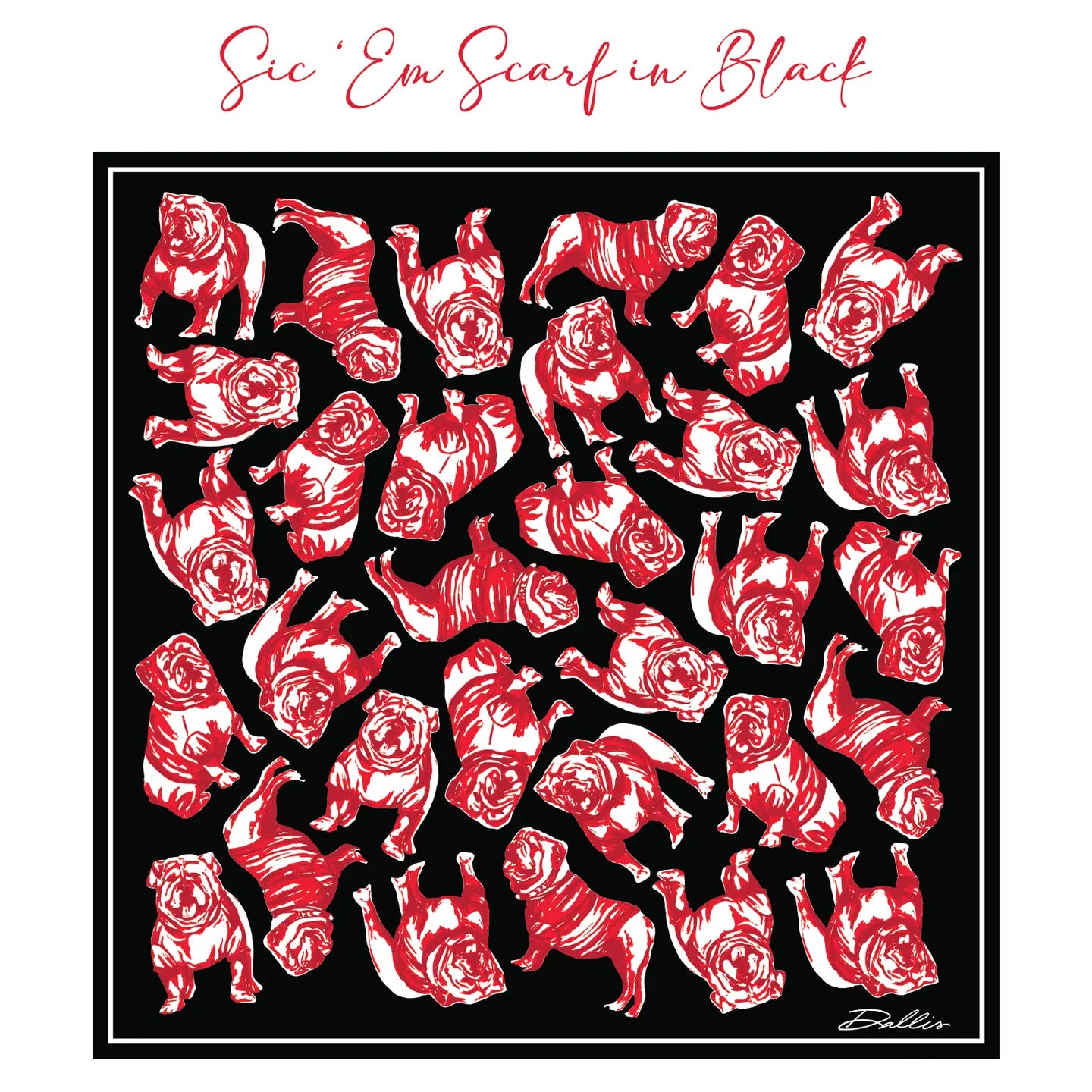 Cheer on the Georgia Bulldogs in style with the Sic ‘Em gameday scarf- the must have accessory for any true Dawgs fan! Whether you’re tailgating outside Sanford Stadium or watching from home, this silk scarf is the perfect accessory to show off your red and black pride! Size: 22"x22". Perfect for hair, purse, or neck ties. Material: 100% Silk