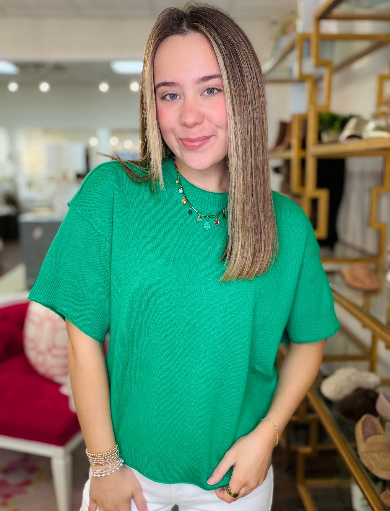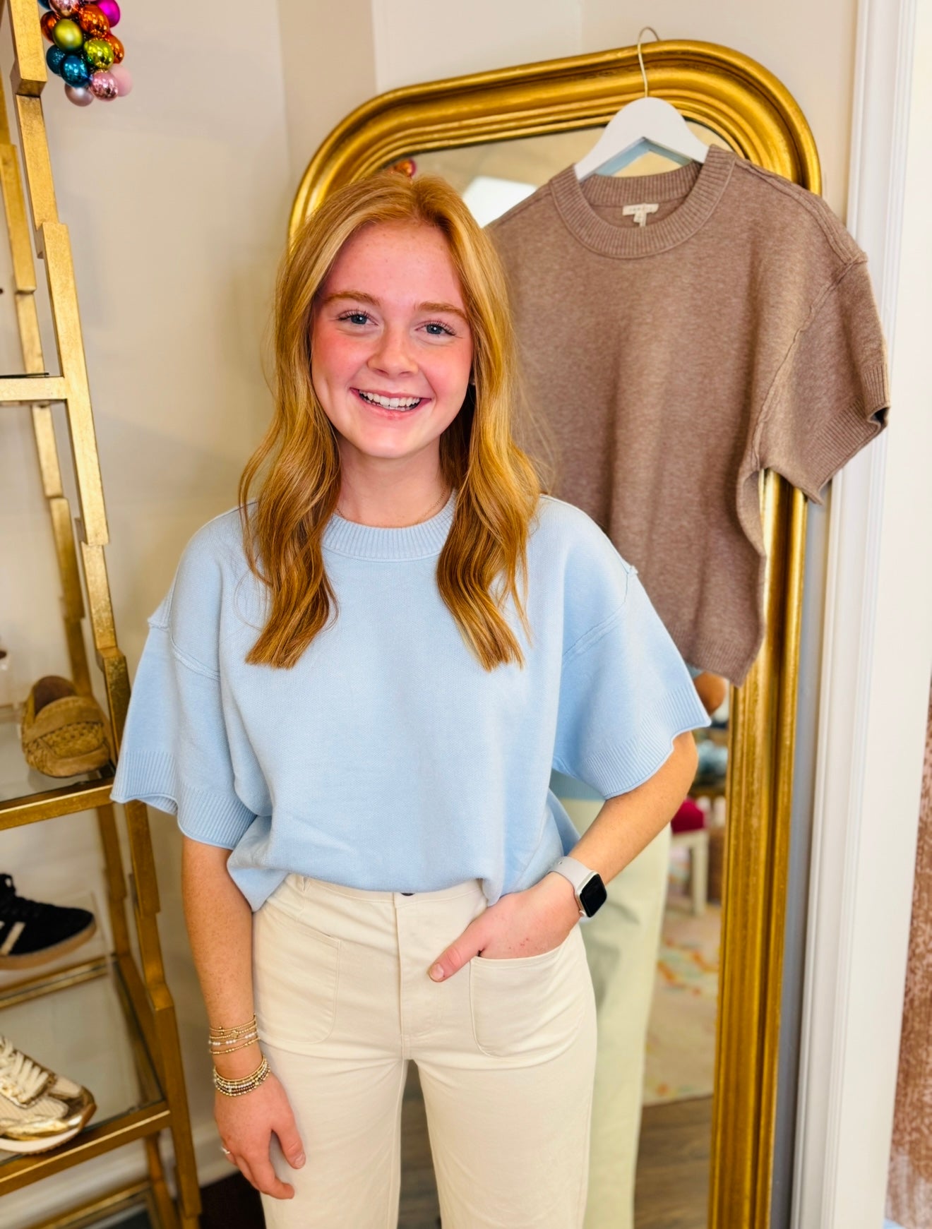 Drop shoulder comfy sweater top with raw edge detail. - Model is 5'10'' and is wearing a Small.