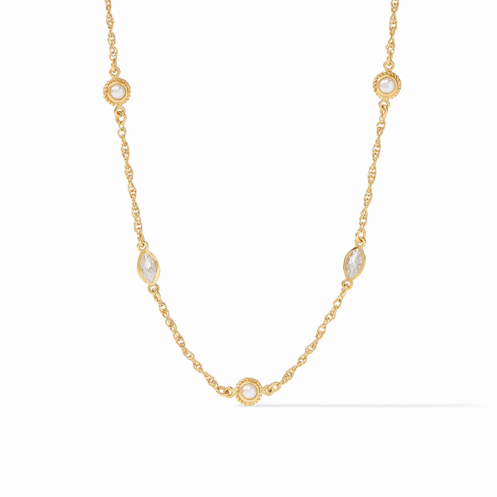Julie Vos/ Monaco Delicate Station Necklace/ Cubic Zirconia + Pearl